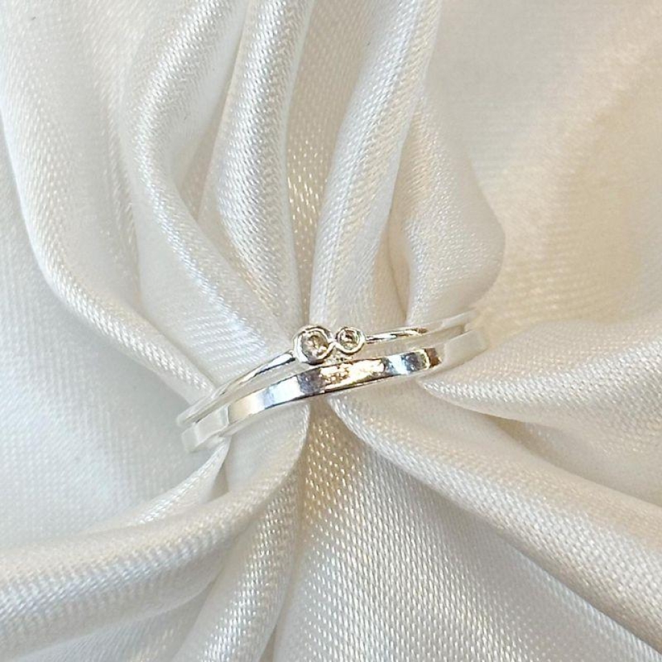 Anel Corações Cravejados e Liso...