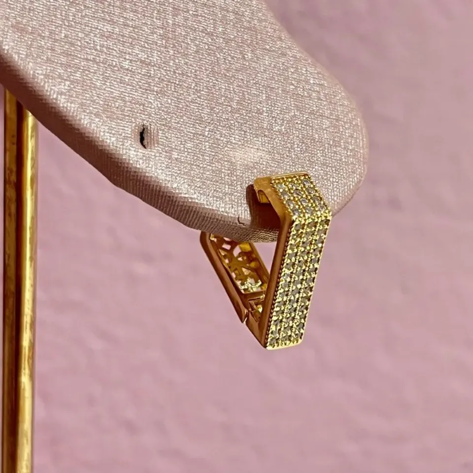 Brinco Argolinha Triângulo Cravejado...