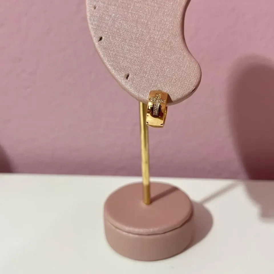 Brinco Argolinha Triângulo Cravejado...