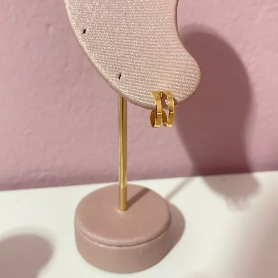 Brinco Argolinha Triângulo Cravejado...
