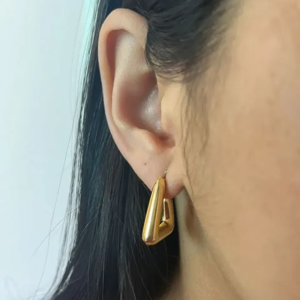 Brinco Argolinha Triângulo Cravejado...