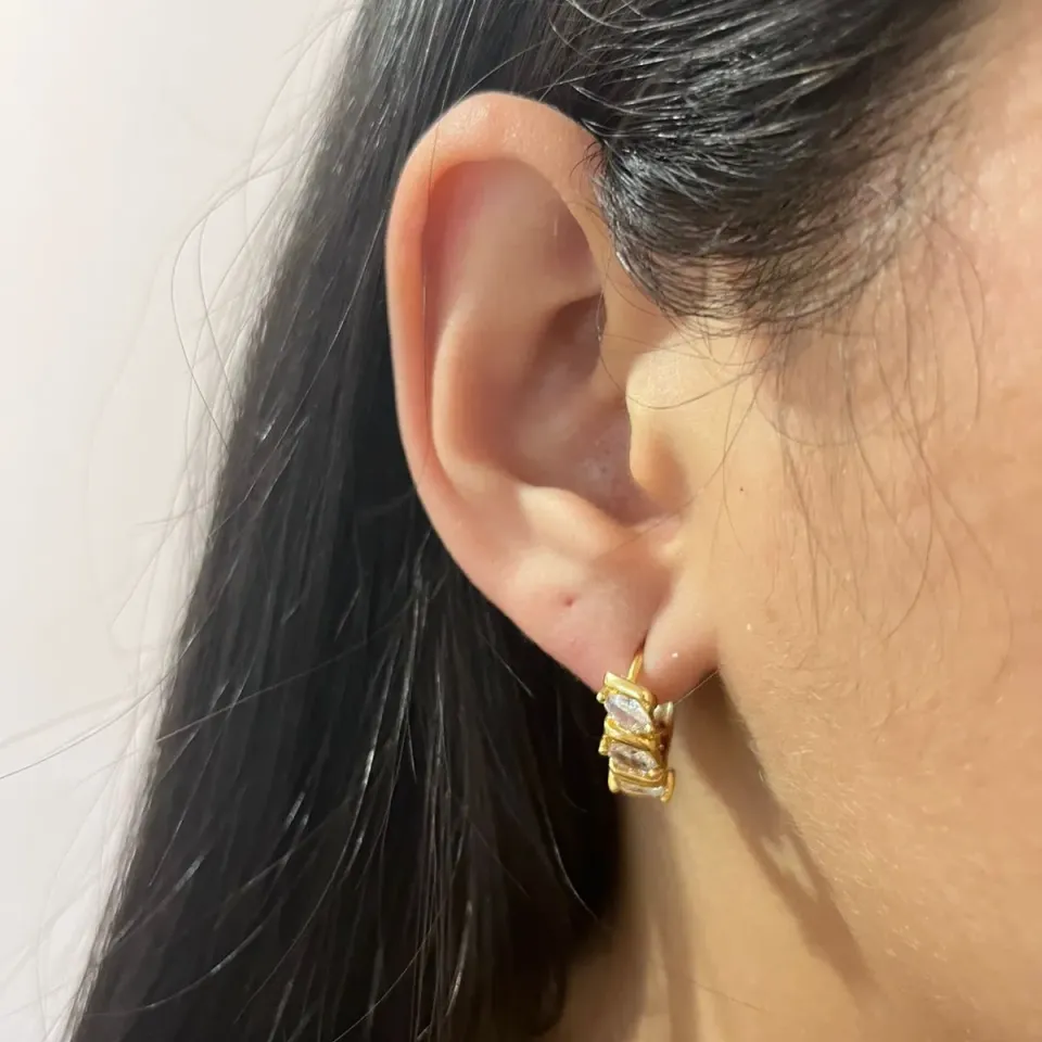 Brinco Argolinha Triângulo Cravejado...
