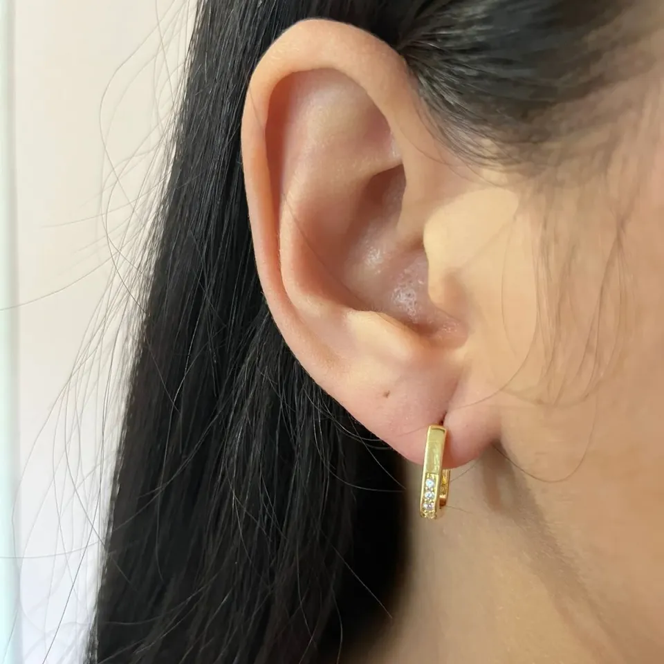 Brinco Argolinha Triângulo Cravejado...