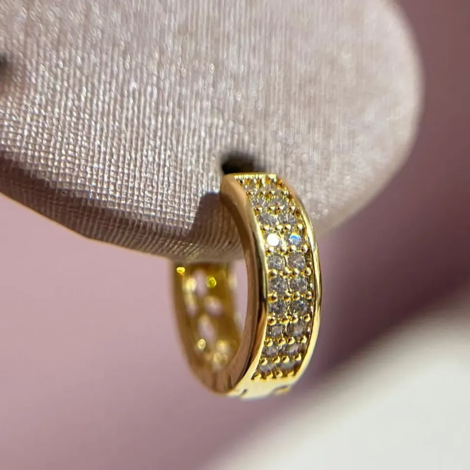 Brinco Argolinha Triângulo Cravejado...