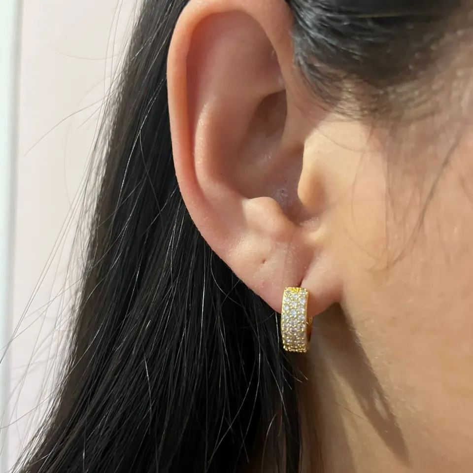 Brinco Argolinha Triângulo Cravejado...