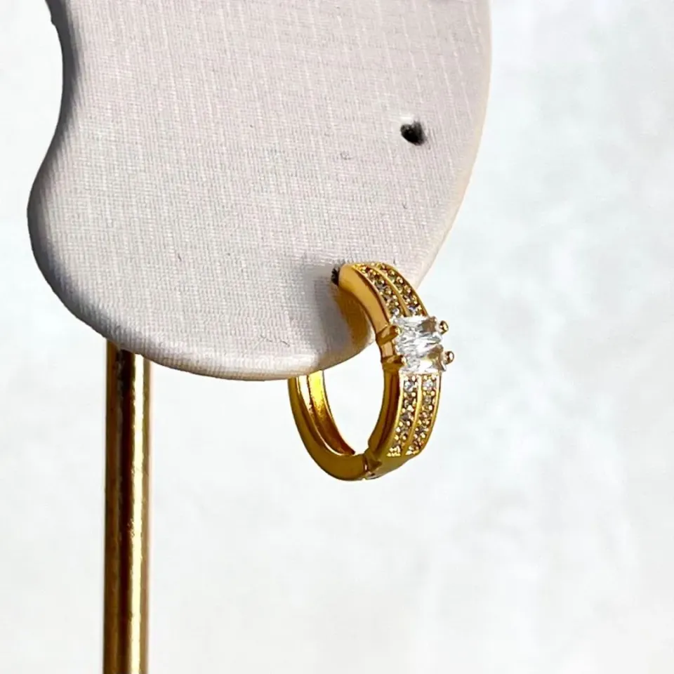 Brinco Argolinha Triângulo Cravejado...