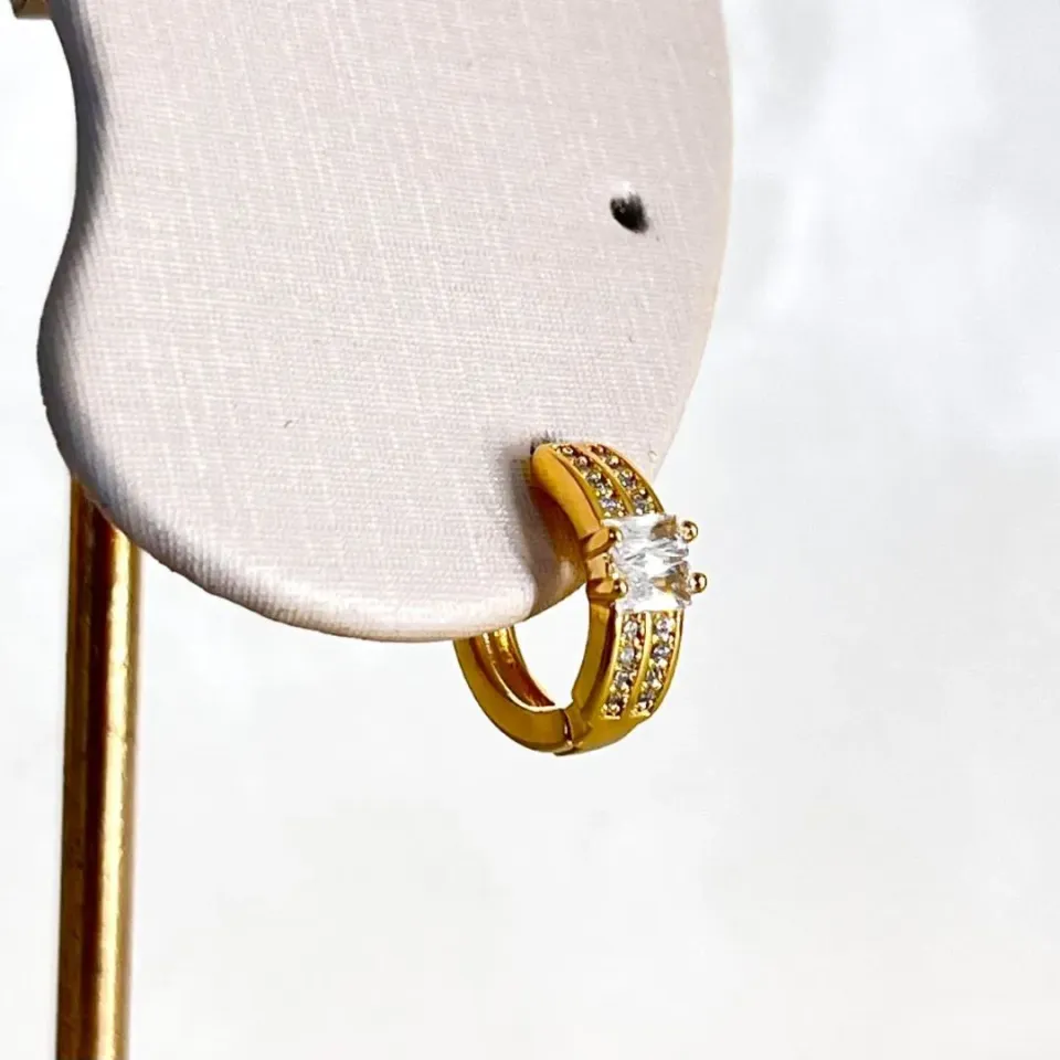 Brinco Argolinha Triângulo Cravejado...