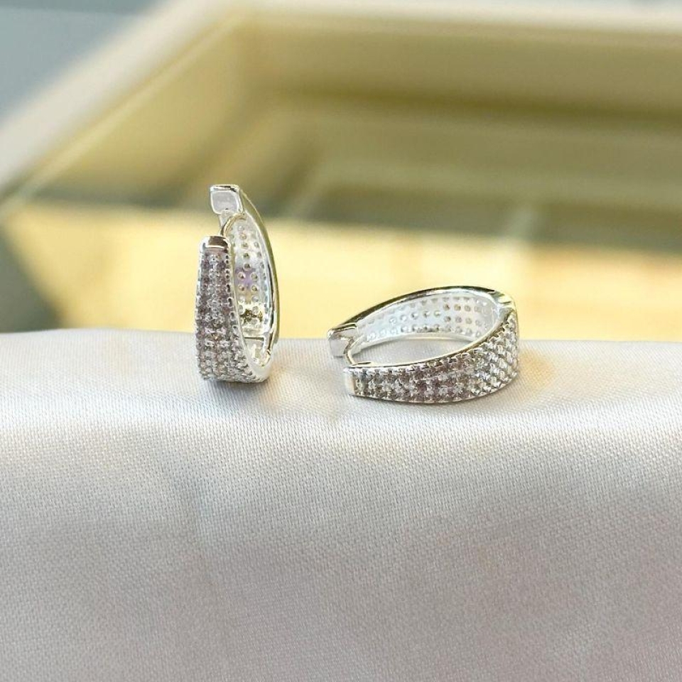 Brinco Argolinha Triângulo Cravejado...
