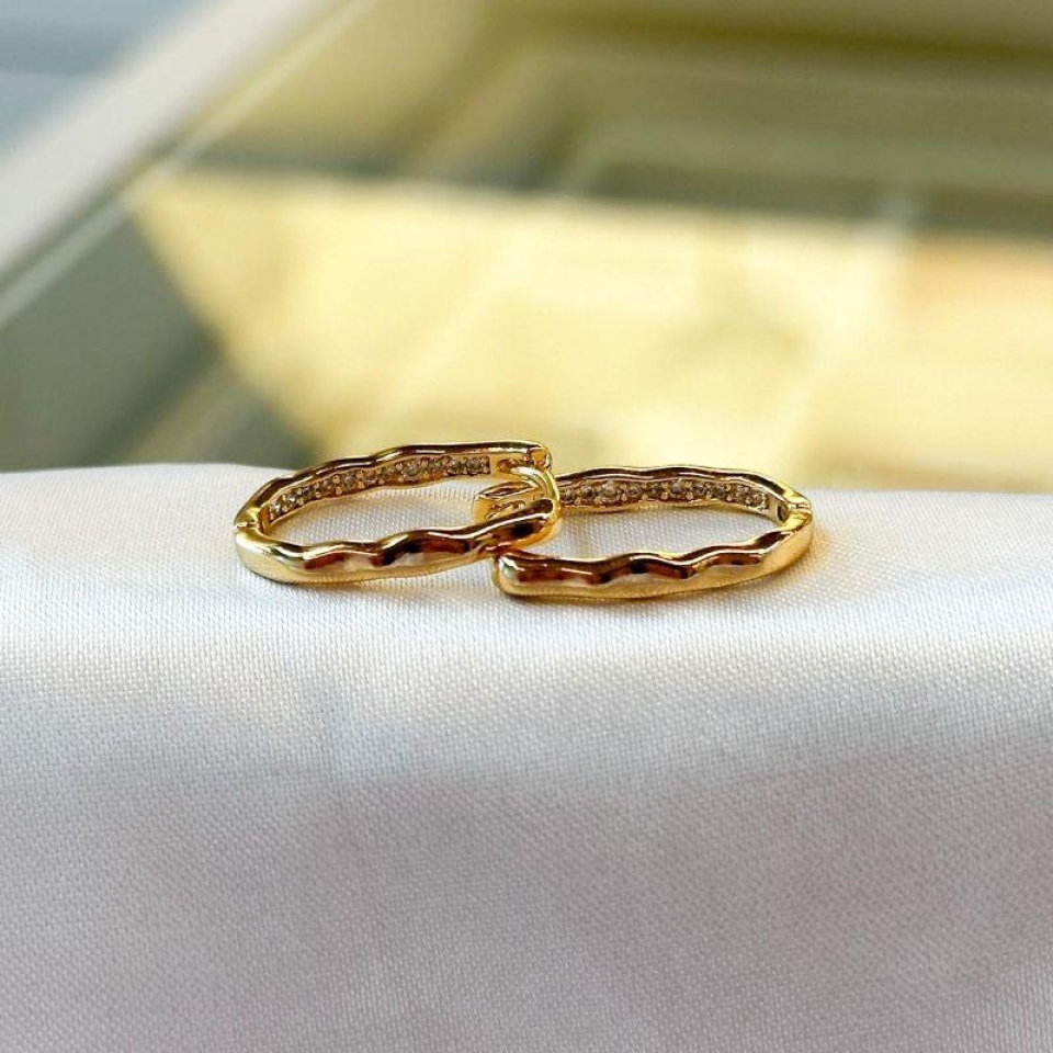 Brinco Argolinha Triângulo Cravejado...