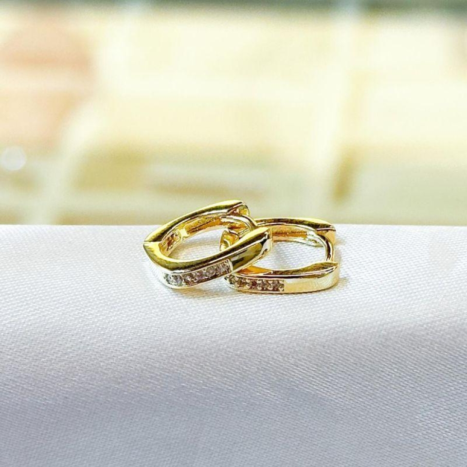 Brinco Argolinha Triângulo Cravejado...