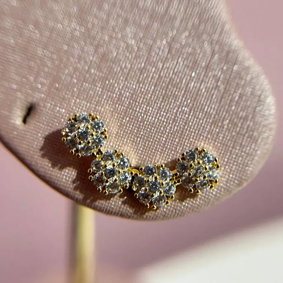 Brinco EarCuff Flores Cravejadas...