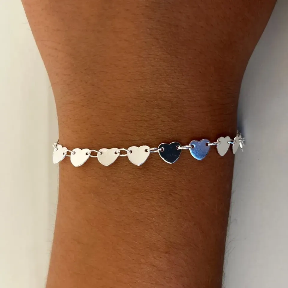 Pulseira Corações Plaquinhas...