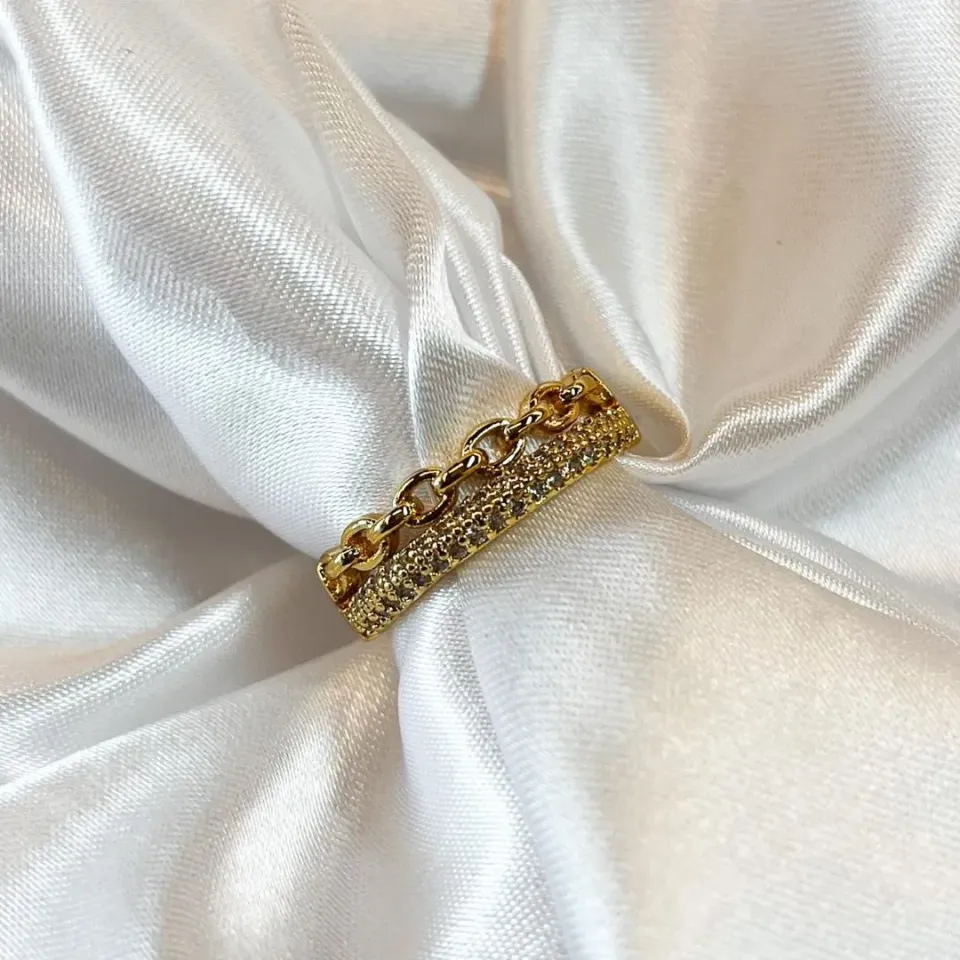 Anel Duas Pontas Redondas Lisa e Cravejada...